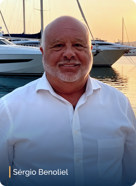 Por trás da GoBoating está alguém que vive e respira o mercado náutico há mais de 30 anos. Sérgio Benoliel começou aos 19 anos como trainee na Mesbla Náutica e, 13 anos depois, já era um dos principais executivos da empresa. Sua trajetória passou pela Real Powerboats, pela criação da MBBoating e por seis anos liderando as operações da icônica Sea Ray Boats no Brasil, onde trabalhou diretamente com os principais executivos americanos, na sede da empresa em Knoxville, Tennessee.