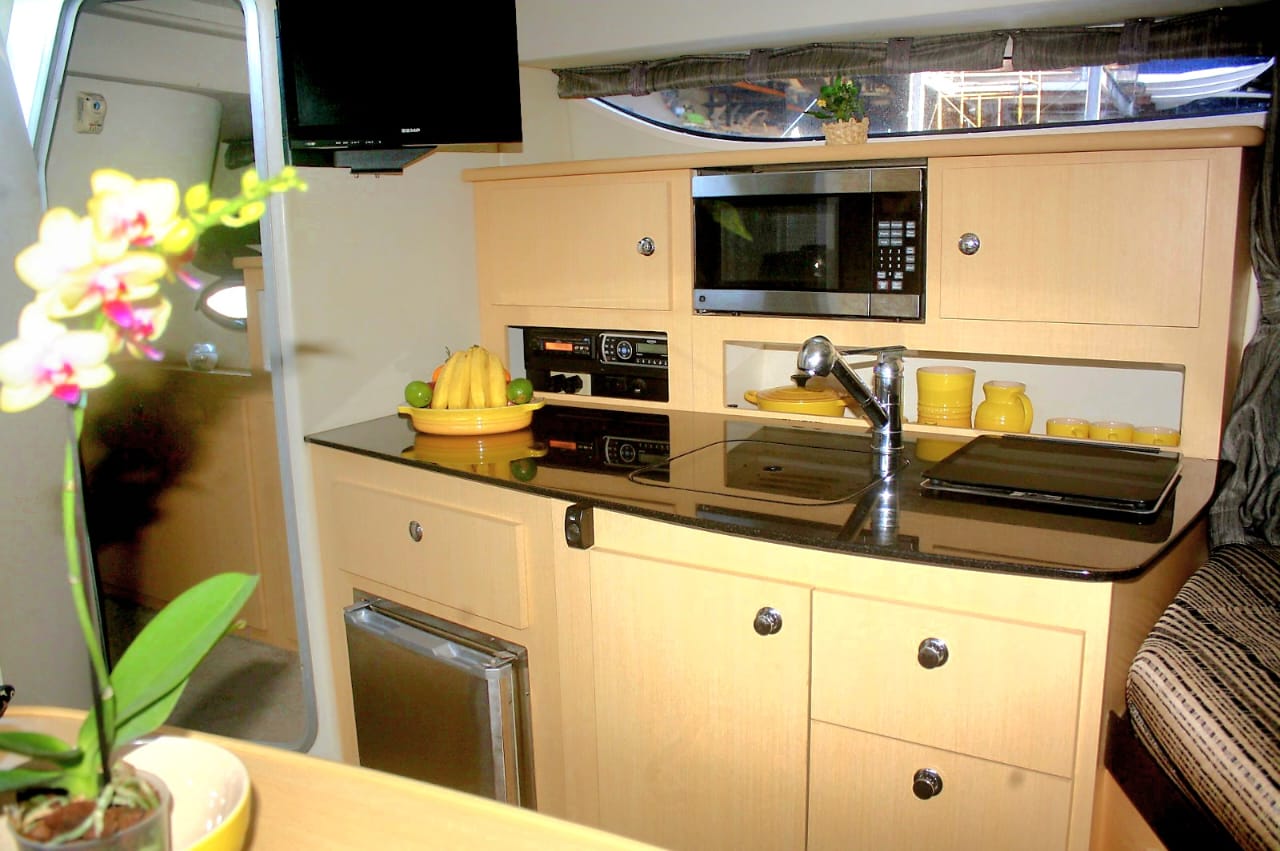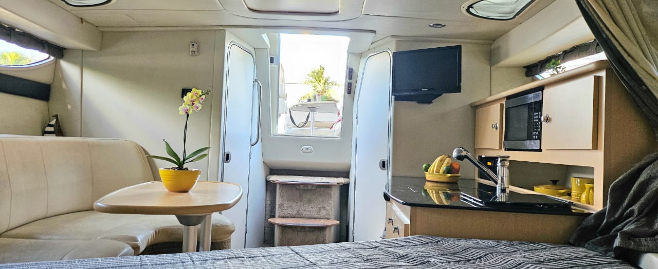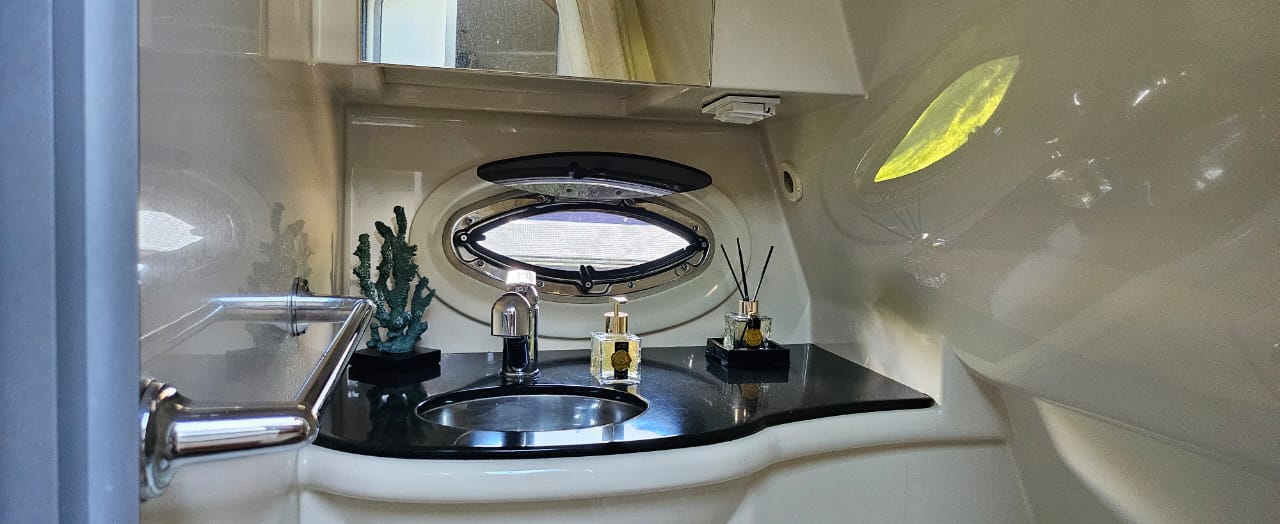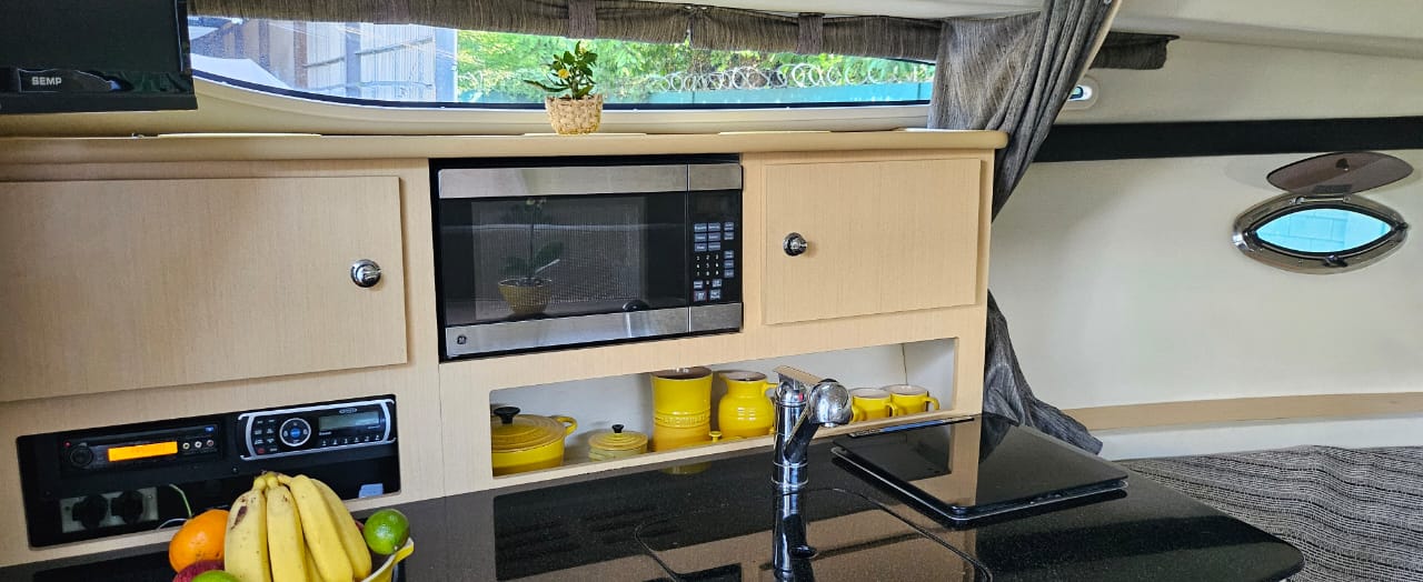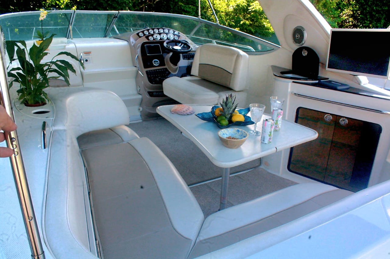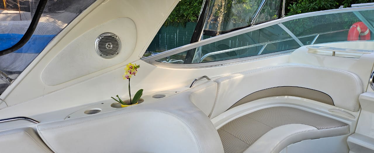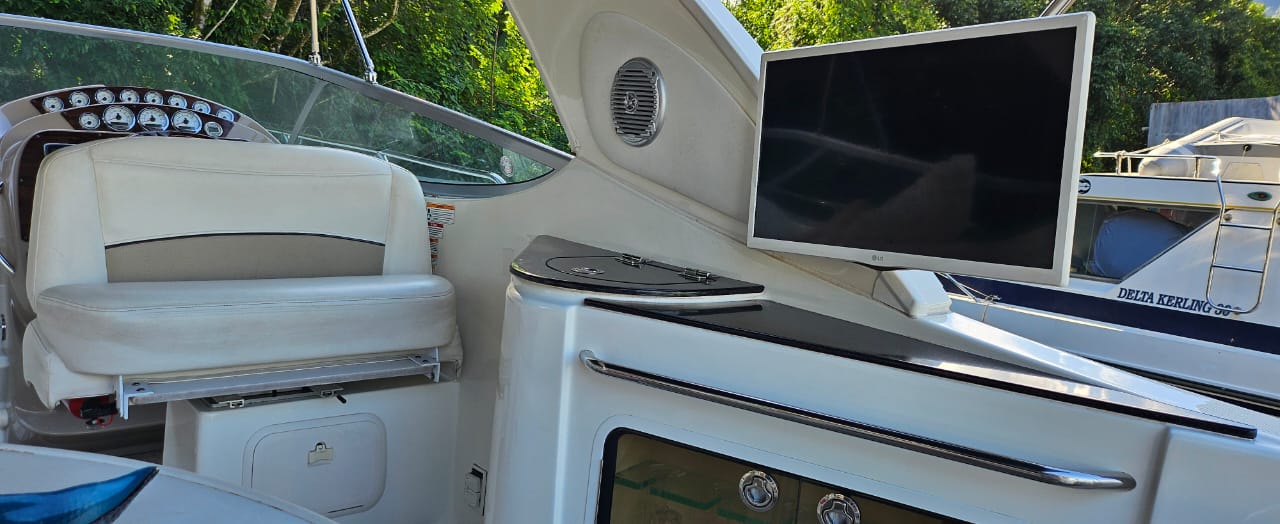 A Bayliner 350 (2017) conta com dois motores MerCruiser 270 HP e 425 horas de uso, oferecendo desempenho sólido e navegação confortável. Com 10,65 m de comprimento e capacidade para 11 tripulantes, possui tanques amplos e construção robusta, ideal para passeios, lazer em família e cruzeiros com segurança e comodidade.